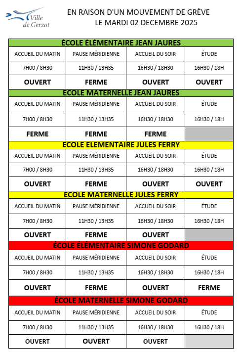En raison d’un préavis de grève nationale, le fonctionnement des accueils périscolaires du matin, de la pause méridienne et du soir va être perturbé pour la journée du mardi 2 décembre 2025.