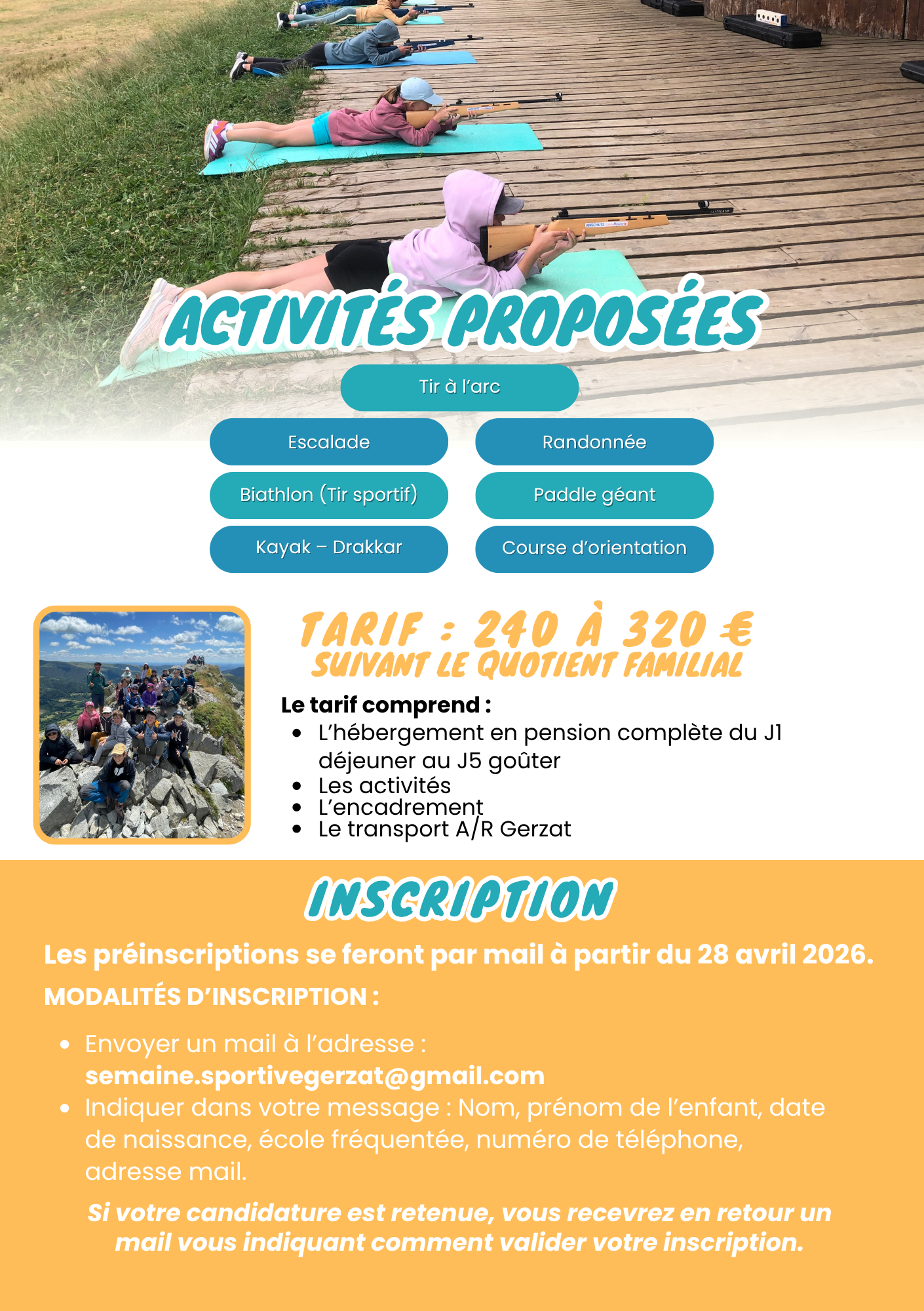 – Envoyer un mail à l’adresse : semaine.sportivegerzat@gmail.com